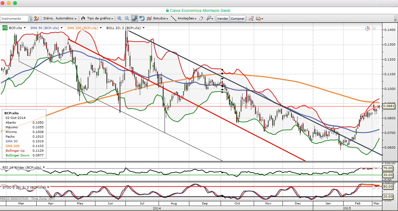Assim, creio que, tecnicamente, mesmo correndo o risco de no presente, o Bcp, estar algo enviosado quanto à anáise técnica, está "overbought"