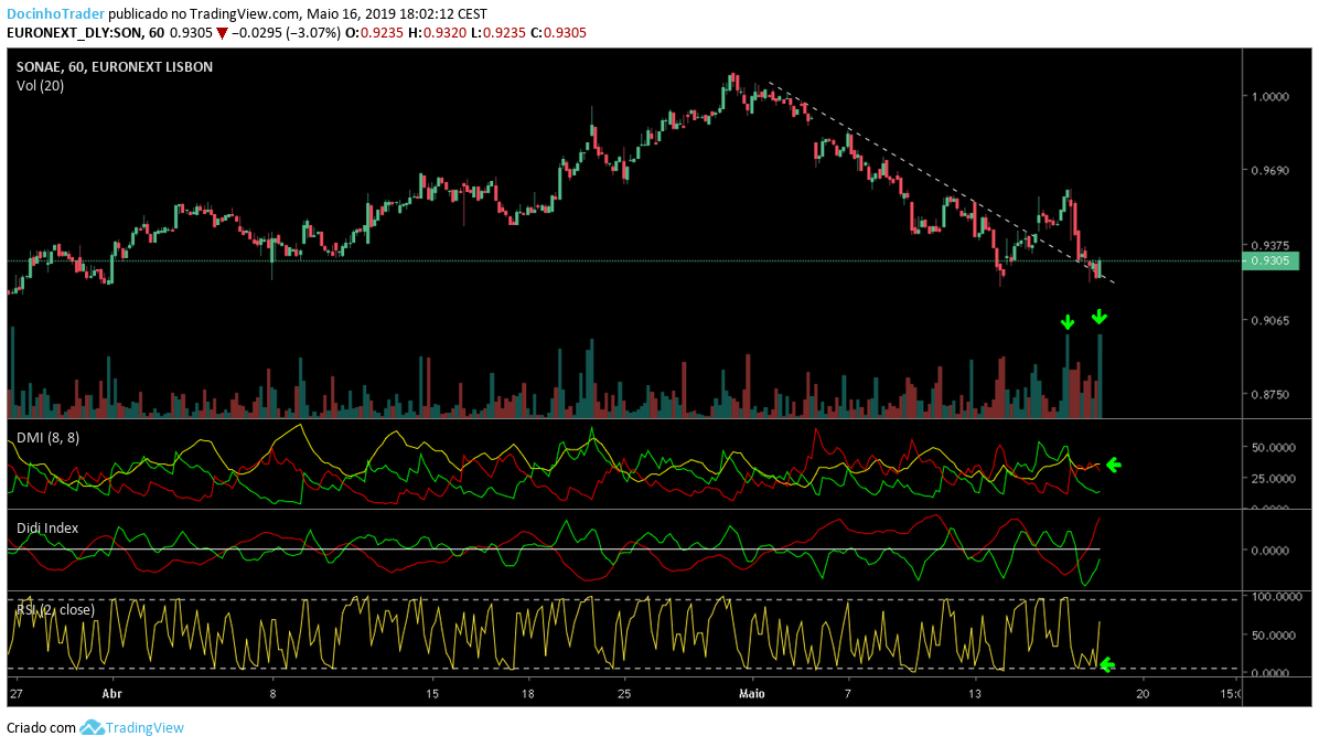Sonae retraindo até antiga resistencia agora zona de suporte, fez martelo mas se estivesse virado de cabeça para baixo não era pior. :)
