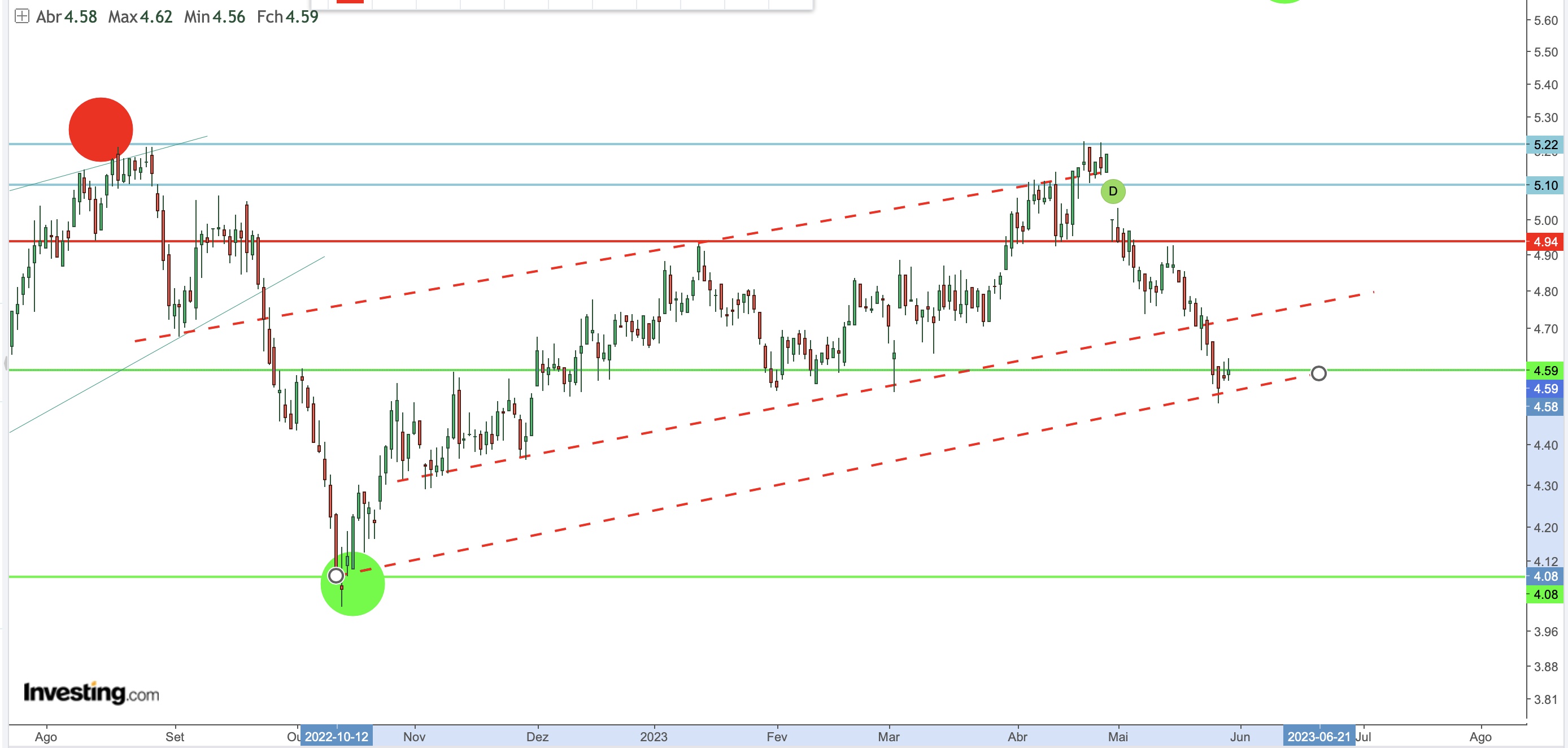 Penso que seja esse o suporte forte, pena não ter deixado ontem a ordem a 4,65 e tinha feito uns bons euros, tinha-a deixando antes de ontem.