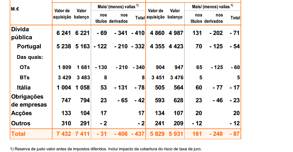Quanto a menos valia quando falo em derivados é porque os ganhos com divida publica nao cobriram a perda associada derivados relacionados com a mesma vou meter essa imagem no proximo post... sendo essa a causa para os prejuizos.... quando falei no provisionamento falei no sentido de o prejuizo ser maior....que o estimado