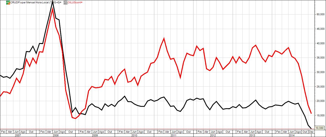 wti no 7º mês consecutivo de quedas, à semelhança do que fez em 2008.