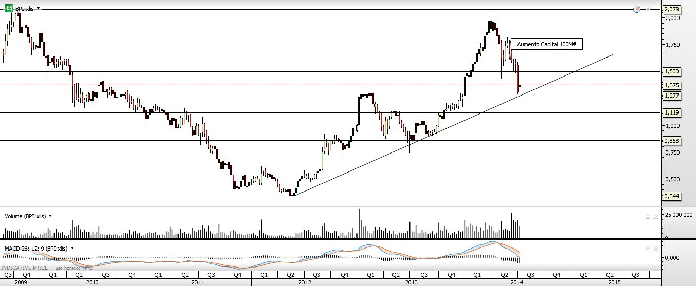 Bom falando do BPI hoje abri uma nova posição no BPI a 1,439 para tentar apanhar estas novas subidas , espero não estar a cometer um erro ... porque este dinheiro faz-me falta para o aumento de capital do bpc tenho os tostões todos contados até ao ultimo centavo ...