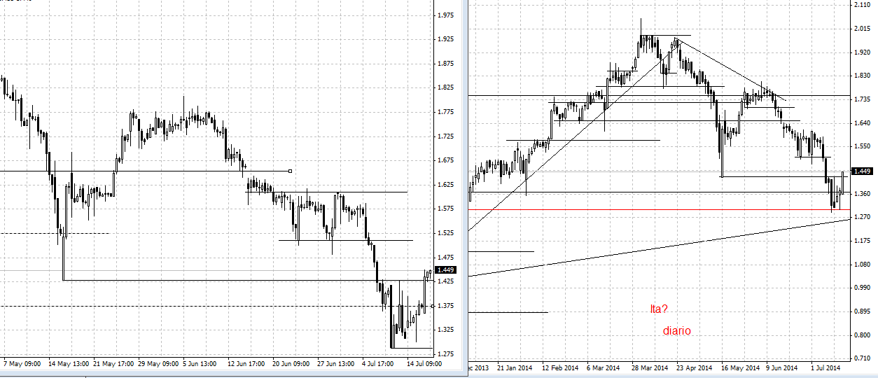 ... no curto prazo era bom continuar acima dos 1,41,e manter-se assim para depois poder ir atacar os 1,52,caso os consiga quebrar em alta pode ir ate aos 1,65,se quebrar em baixa os 1,41 possivelmente vai ate aos 1,37 e caso os quebre provavelmente vai a mínimos relativos