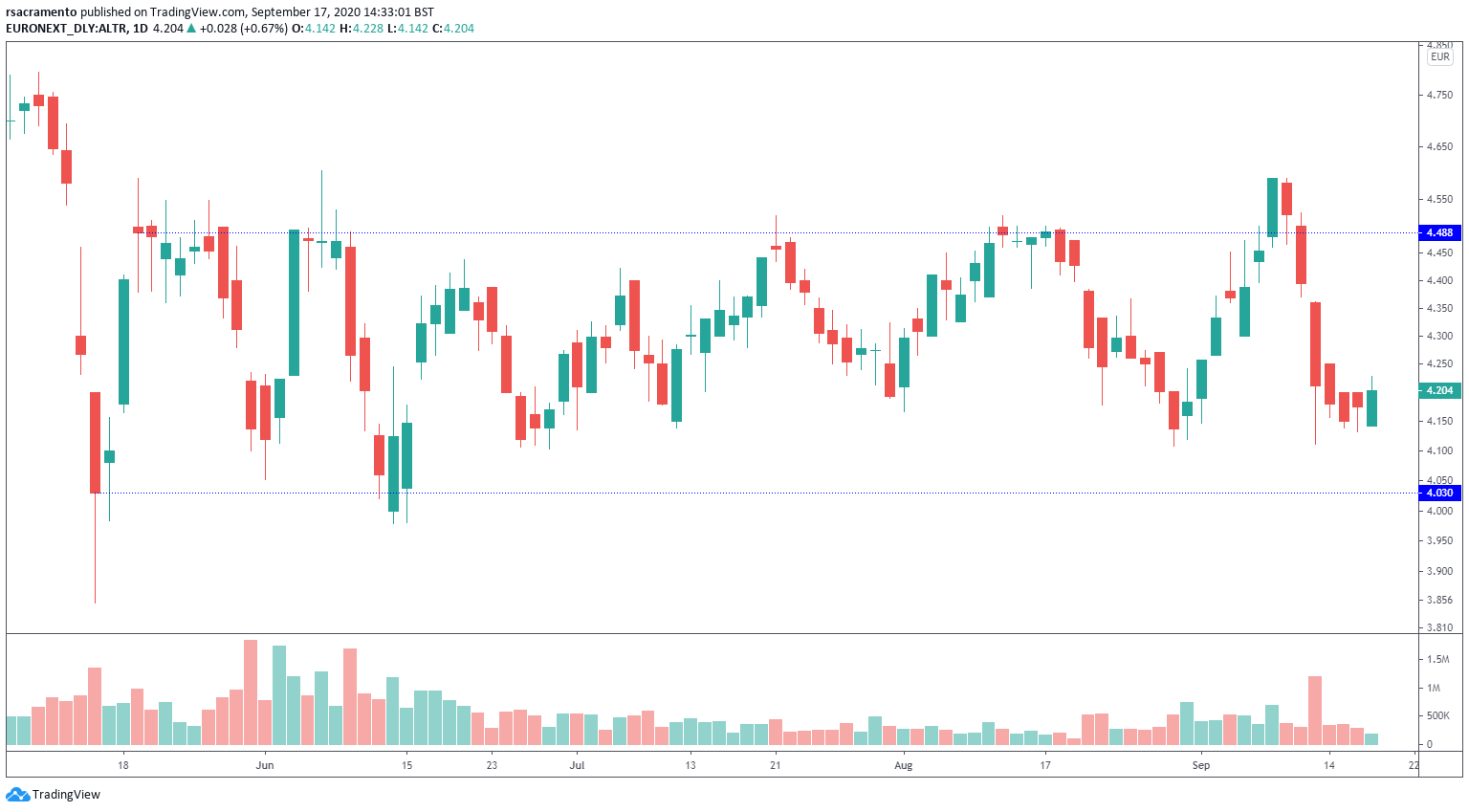 Se, no pior cenário, o preço das ações duplicar apenas no ano 10, teremos um retorno mínimo de 10% ao ano (100%/10 anos). Como tal, parece-me que a ALTR está a ser transacionada a preços muito atrativos atualmente.