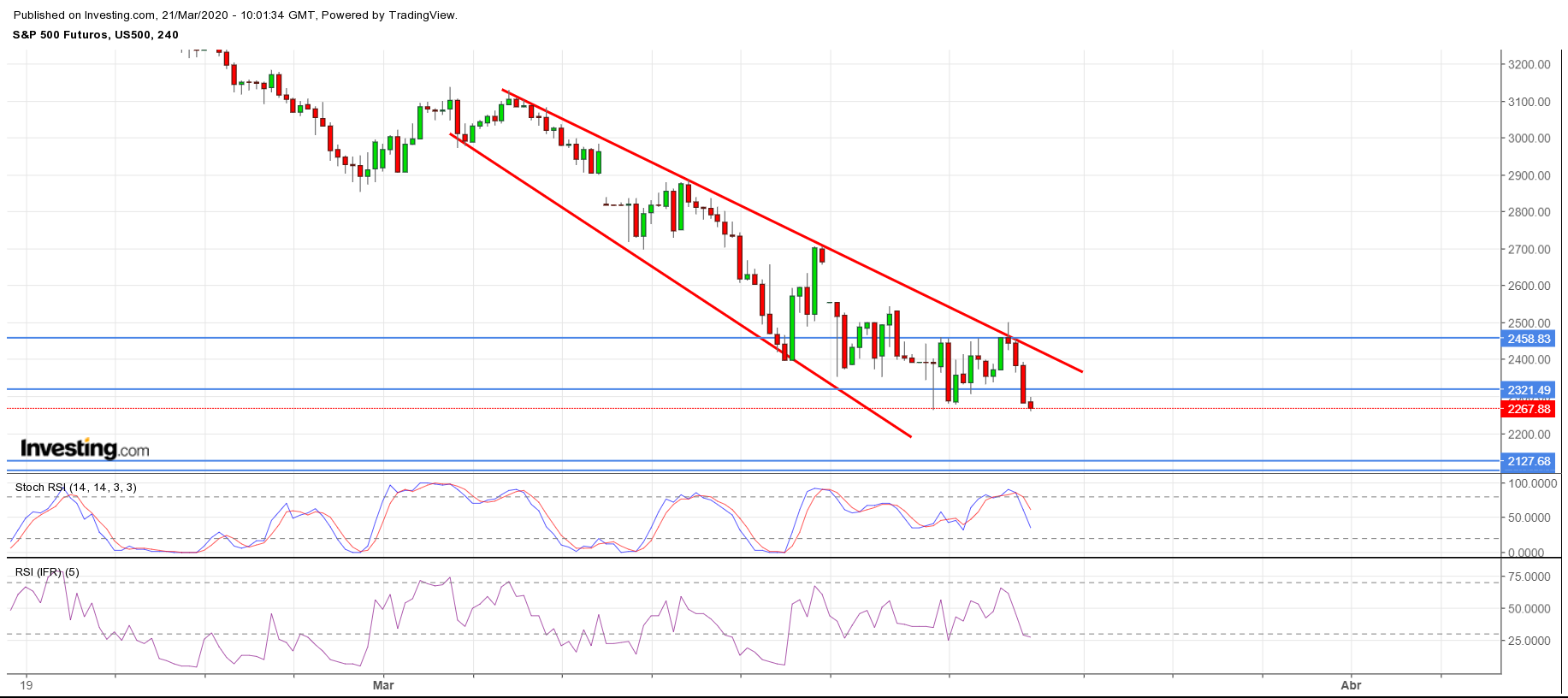 Estas noite, as declarações do Governador da Flórida (afirmou que, em 8 semanas,metade do estado da Flórida estará infectado) e do responsável de saúde de NY, que diz que daqui a 2/3 semanas os hospitais de NY ficarão sem equipamentos médicos (incluem mascaras ventiladores etc) estão a atirar os futuros de novo para baixo.