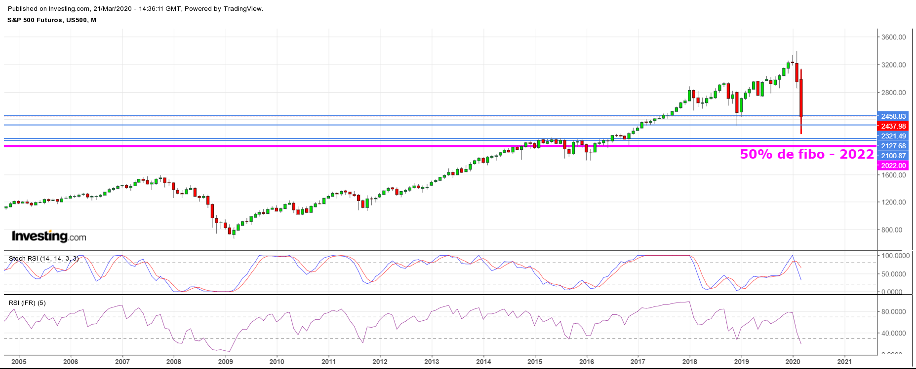 Também aponto para essa zona entre os 2130 e os 2030, 50% retracement do grande Bull market, e mínimo da noite da eleição do Trump.