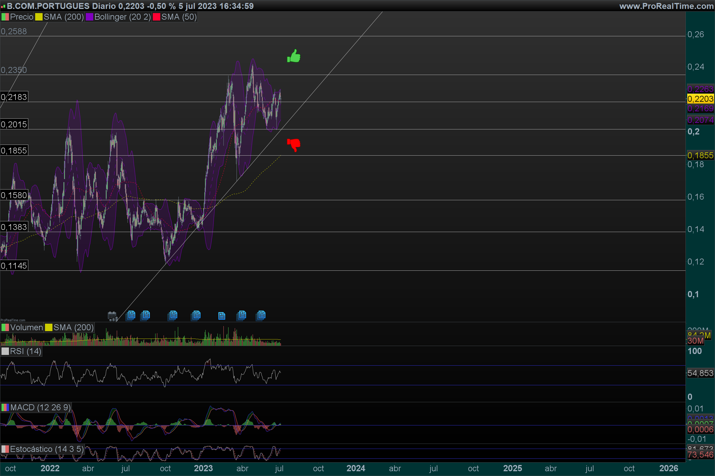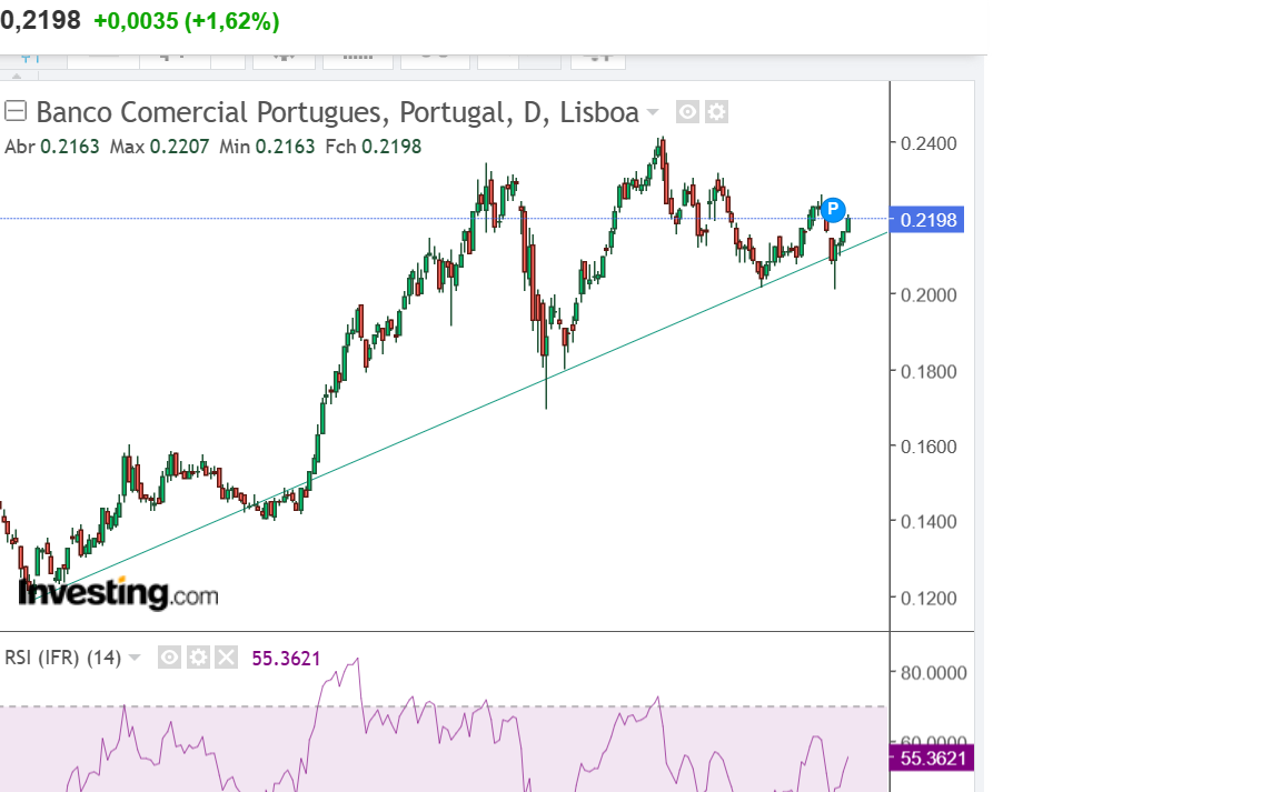 O BCP hoje deu um excelente dia, de 0.2285 a 0.2323, com fecho em 0.2302.