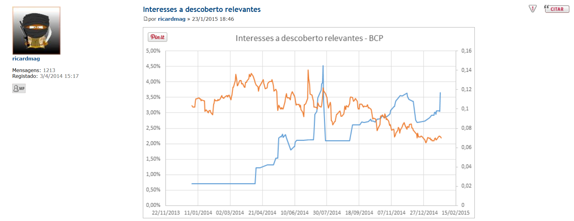 Quando estava a fazer o gráfico do BCP estava também a ver as os interesses a descoberto da PTC e por lapso copiei os dados da PTC em vez do BCP.