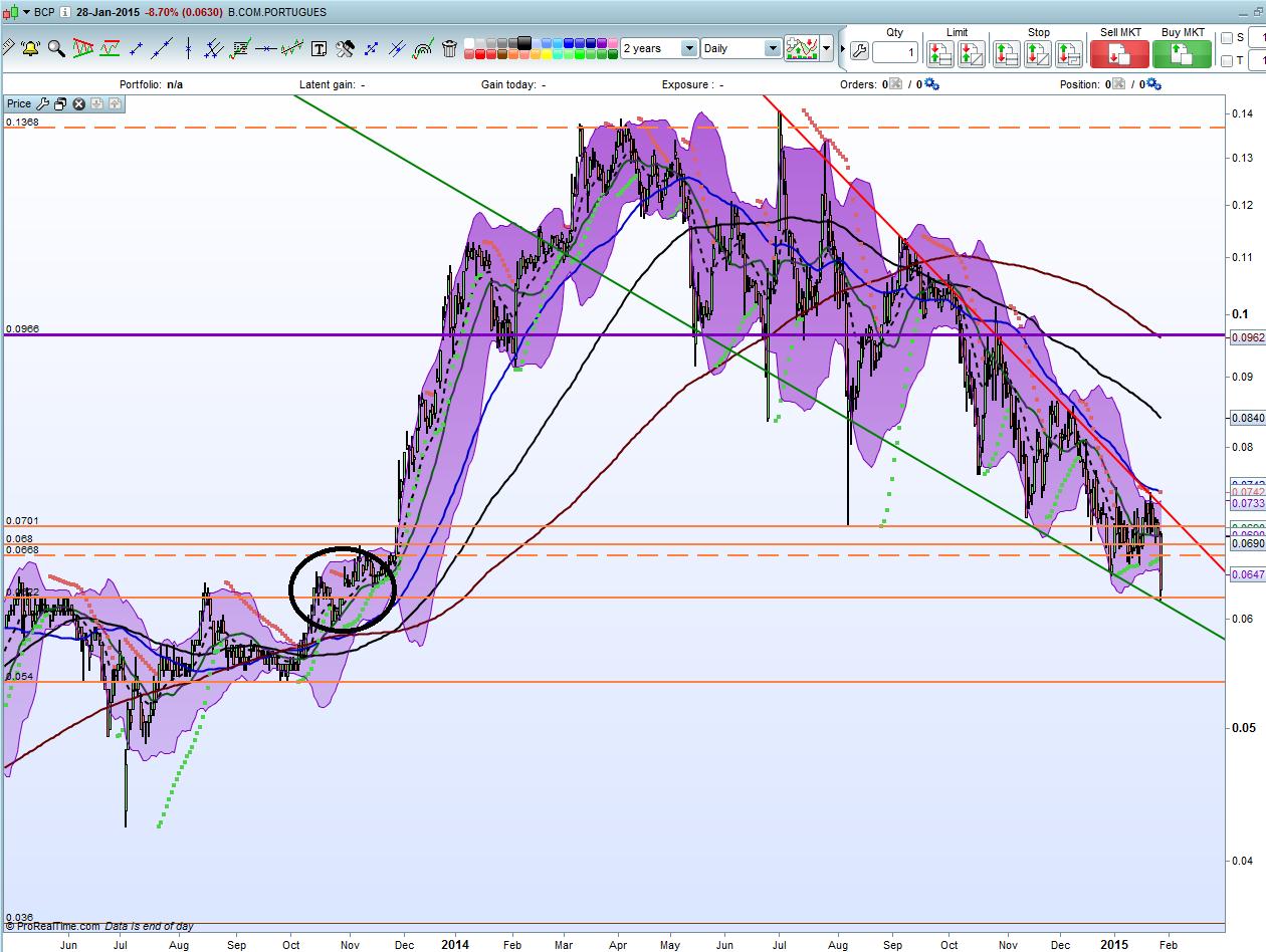 O importante é que BCP está "bear em todos os horizontes temporais...está junto (alias pouco abaixo) ao "suporte" 0,0644/0,065, que pode passar a resistência (vamos ver).