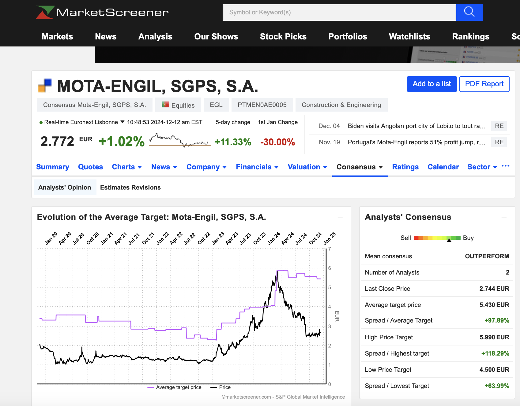 A plataforma MarketScreener reune o consenso de (alguns) analistas financeiros (aqueles da listagem da GoBulling)