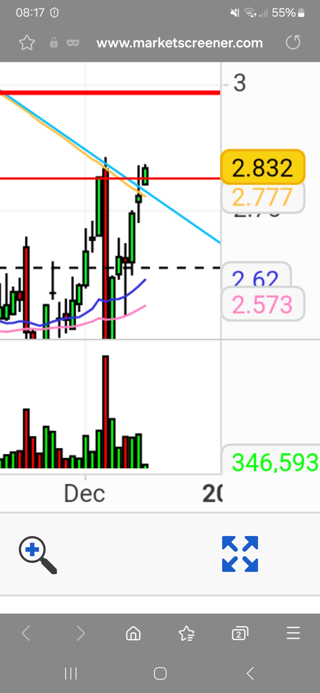 por ora, não venceu a resistência na zona dos € 2,80, e nada garante que no imediato, o consiga fazer.