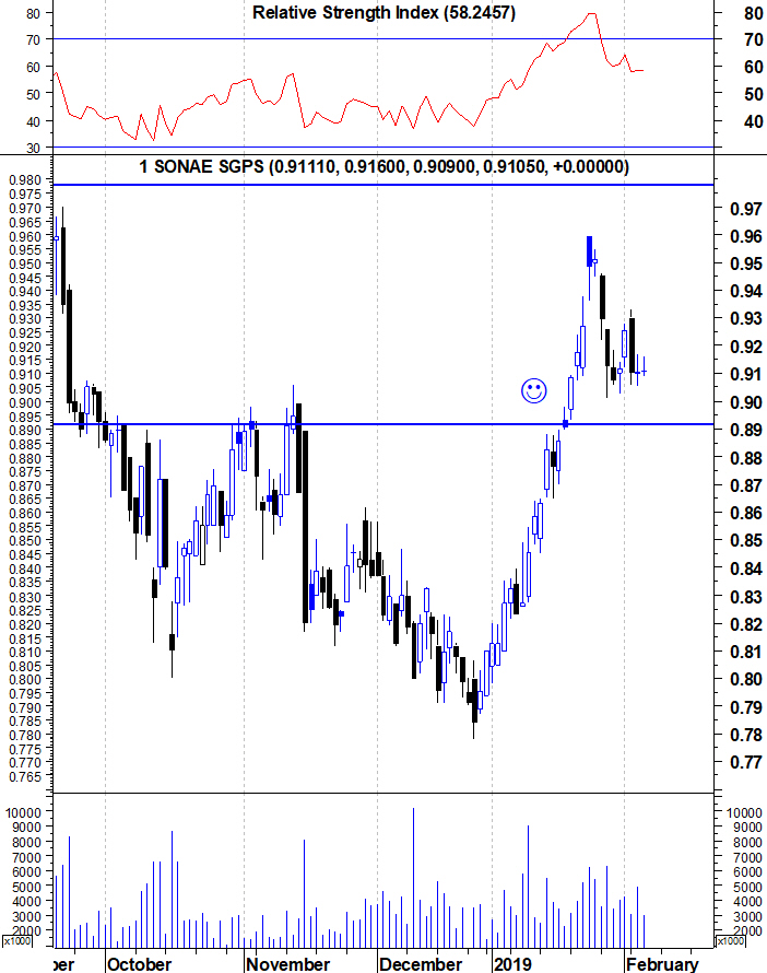 A Sonae está hoje a retrair pelo segundo dia consecutivo. Era importante para os touros que esta correcção parasse na zona dos 0,89, sinal de quebra de resistência e de reteste com sucesso da zona de resistência quebrada.