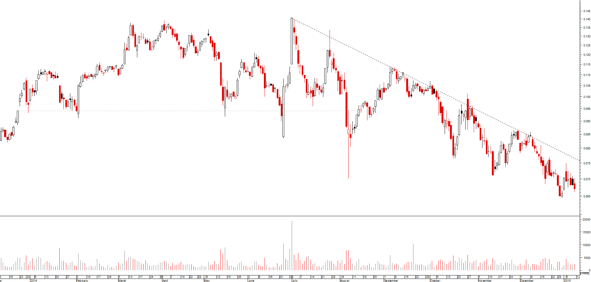 boas noites é uma possibilidade mas não estou com fé a activação deste inverted teria de quebrar os 0.0749 em alta com volume uma possibilidade a ter mas o titulo esta definitivamente bear desde a perda do suporte dos 0.0702 .... aliás o titulo activou um triangulo rompido que projecta até os 0.0620 mas ..... pode não chegar para já deixo um cenário optimista pouco credível mas possível...