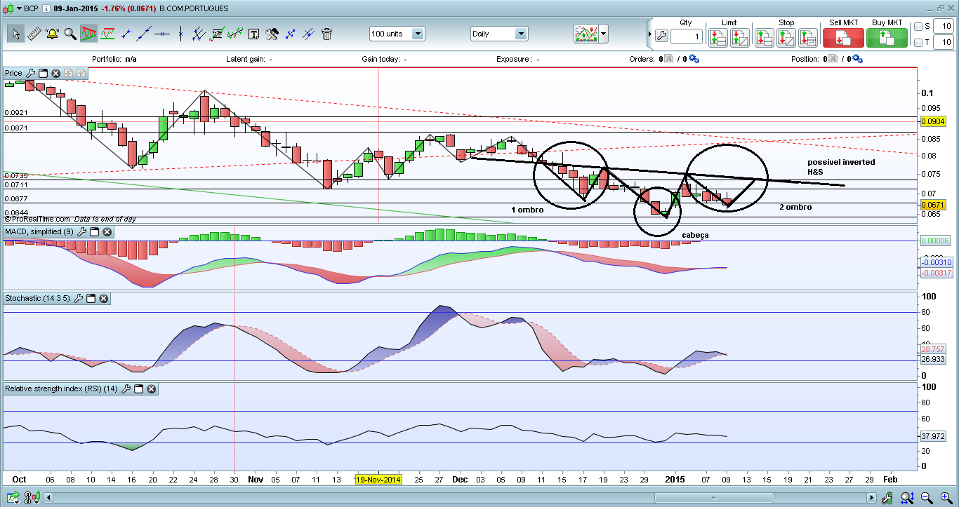 Apesar de aqui, por mais de uma vez, se ter dito que a tendência da cotação do BCP é descendente e que ela se encontra dentro de um canal descendente, é difícil de resistir à tentação de comprar, eu sei ...A atração pelo abismo tem o seu poder ... Teria sido melhor, talvez, esperares, pacientemente, que a cotação do BCP saísse do canal descendente rompendo a sua margem superior.