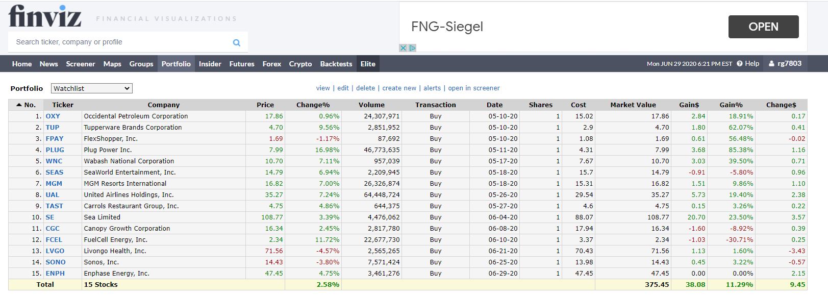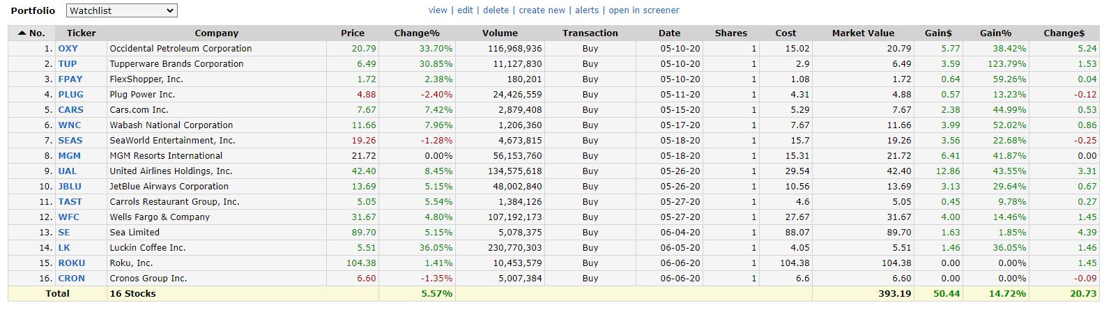 A lista não é mais do que um conjunto de títulos (que vou adicionando/removendo) que compilo através da ferramenta "portfolio" do Finviz, para não me esquecer deles.