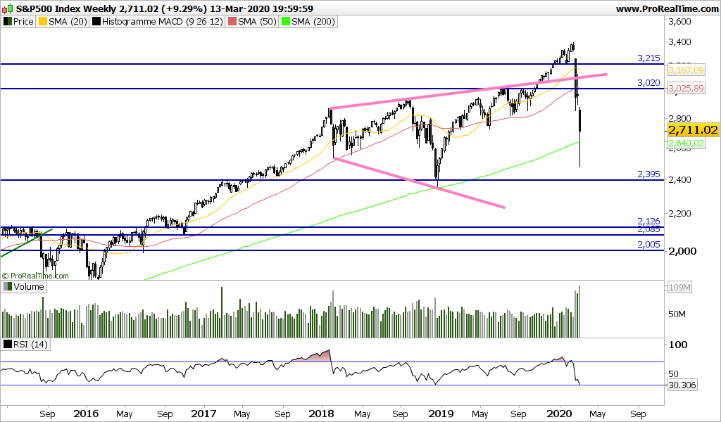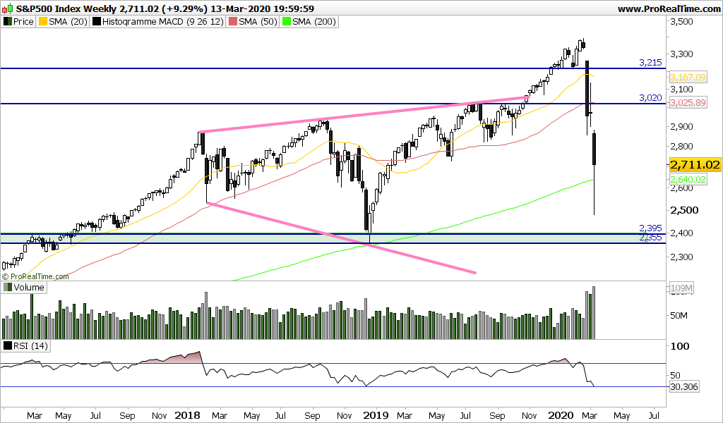 Estive a rever o comportamento do SP500 no Bear Market de 2008. Esta semana, antes deste fecho e durante as declarações do Trump, aproximou-se à pior semana de Outubro de 2008. Sem querer fazer comparações, essa semana, apesar de violenta, não provocou a exaustão das vendas. Estas, continuaram até à primeira semana de Março de 2009. Os primeiros sinais de inversão ocorreram a partir daí. Enquanto não assistirmos a sinais equivalentes de inversão, nada se pode dizer sobre o que temos pela frente.