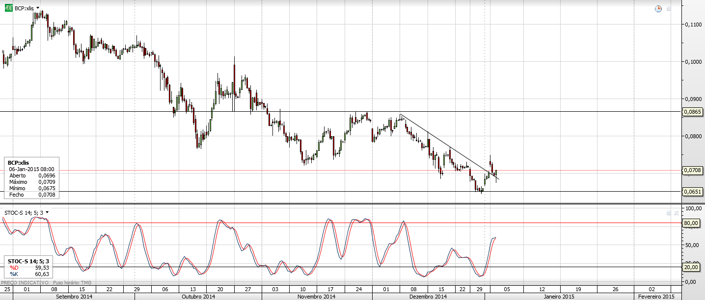 a minha ideia sobre o bcp já a escrevi. Como negoceias com base na AT com os gráficos que coloquei de 4H e diário acho q deu pra entender o que penso.