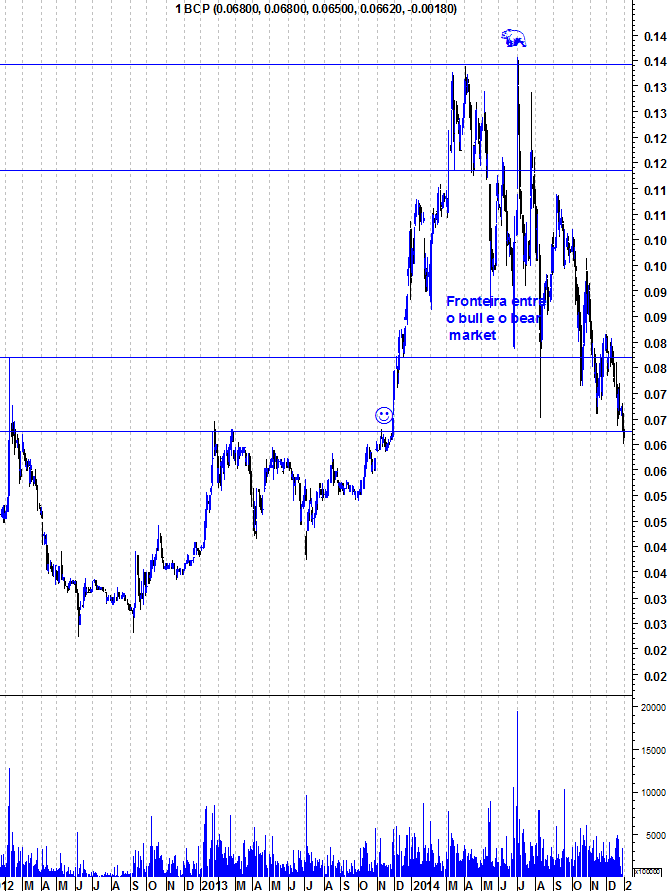 No caso do BCP, sinceramente acho que não faz sentido andarmos à procura de suportes. Tal como tenho referido, em "Bear Markets" o que são relevantes são as resistências e não os suportes.