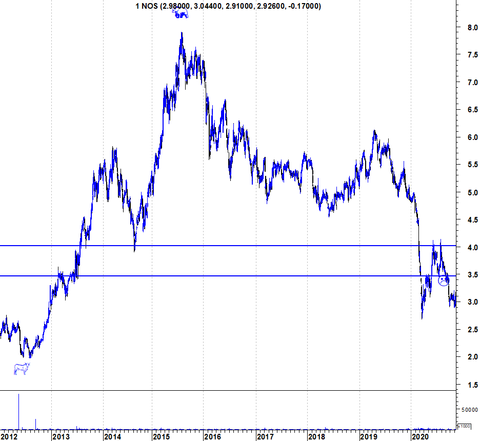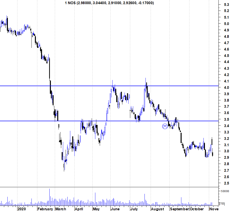 Eu também estaria preocupado se tivesse ações da NOS precisamente porque ela se encontra num ponto em que se descai cai uns valentes furos. O que está contra a subida: