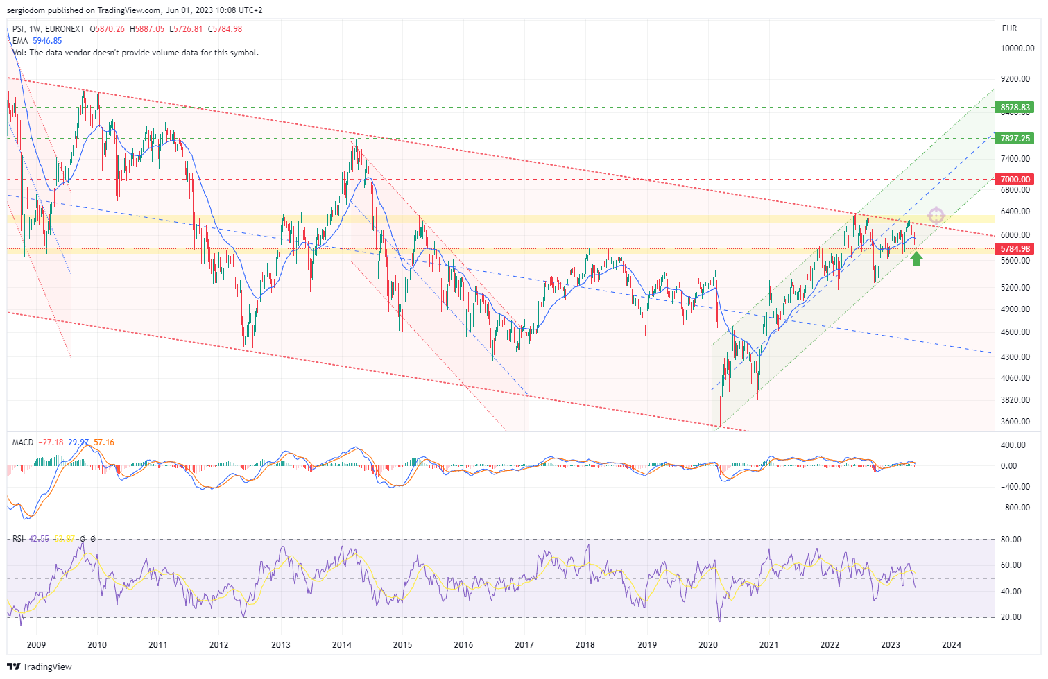 ao mesmo tempo, o PSI20 bateu agora no limite inferior do (sub) canal ascendente pós-COVID e parece estar a aguentar a resisência 5700-5800 pts.