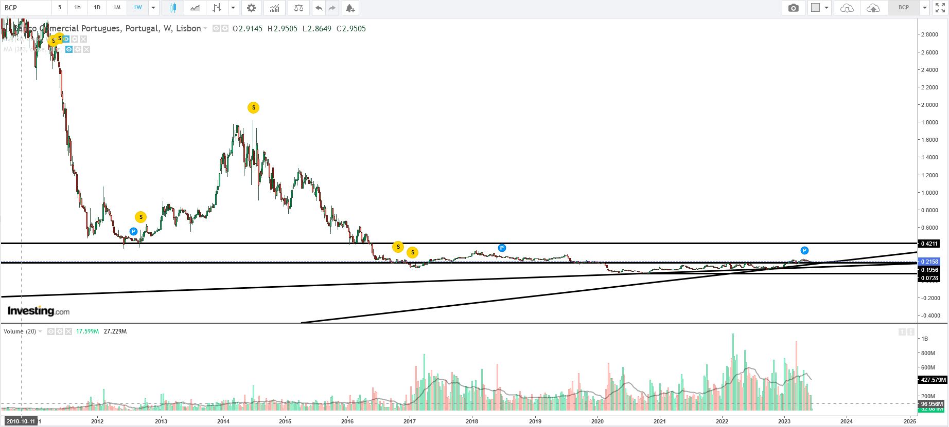 a coisa está a demorar a descolar, mas também penso que está por dias, e não me creio que o BCP vá abaixo dos 0.20EUR.