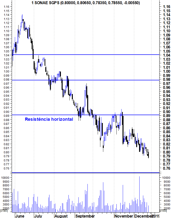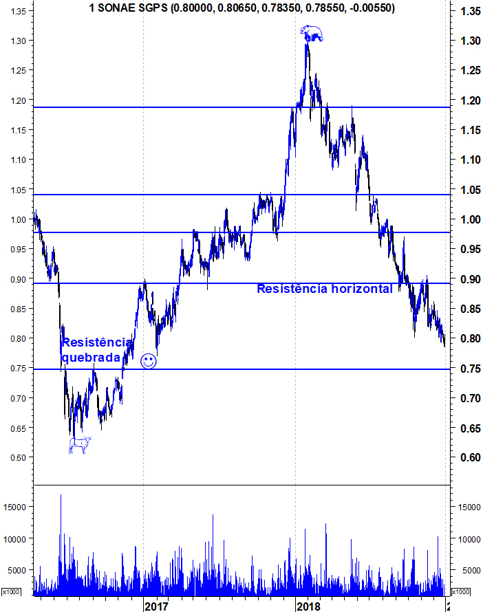 tecnicamente, tem um padrao consistente na inversão , preocupante , em agosto 2018 sobe 4 dias chega quase á mm50 e tem 2 dias fortemente negativos de vendas continuando a cair mais 15 dias , em setembro de 2018 sobe 6 dias ligeiramente acima da mm50 e tem 2 dias de fortes vendas para níveis mínimos e continua a cair , em novembro de 2018 sobe 12 dias ligeiramente até acima da mm50 e tem 2 dias de fortes vendas levando o titulo novamente para mínimos .