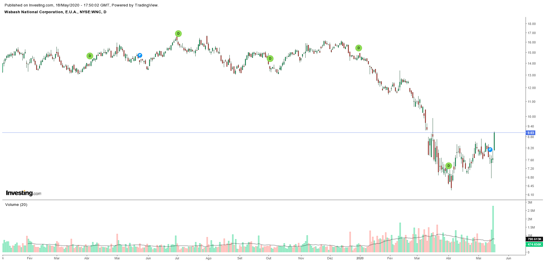 Aproveitei também uma dica de há uns tempos e entrei na DHT a 6,00 e neste momento estou bastante arrependido de não as ter largado quando estiveram 8,40. (Fiquei com elas especialmente porque neste momento estão com um dividendo trimestral interessante face ao preço de entrada e julgo que não vão ter grande impacto com o COVID). Neste momento tenho estado a pensar reforçar na mesma mas não percebo muito de gráficos e análises, não me poderias mais uma vez dar uma ajuda nessa parte!