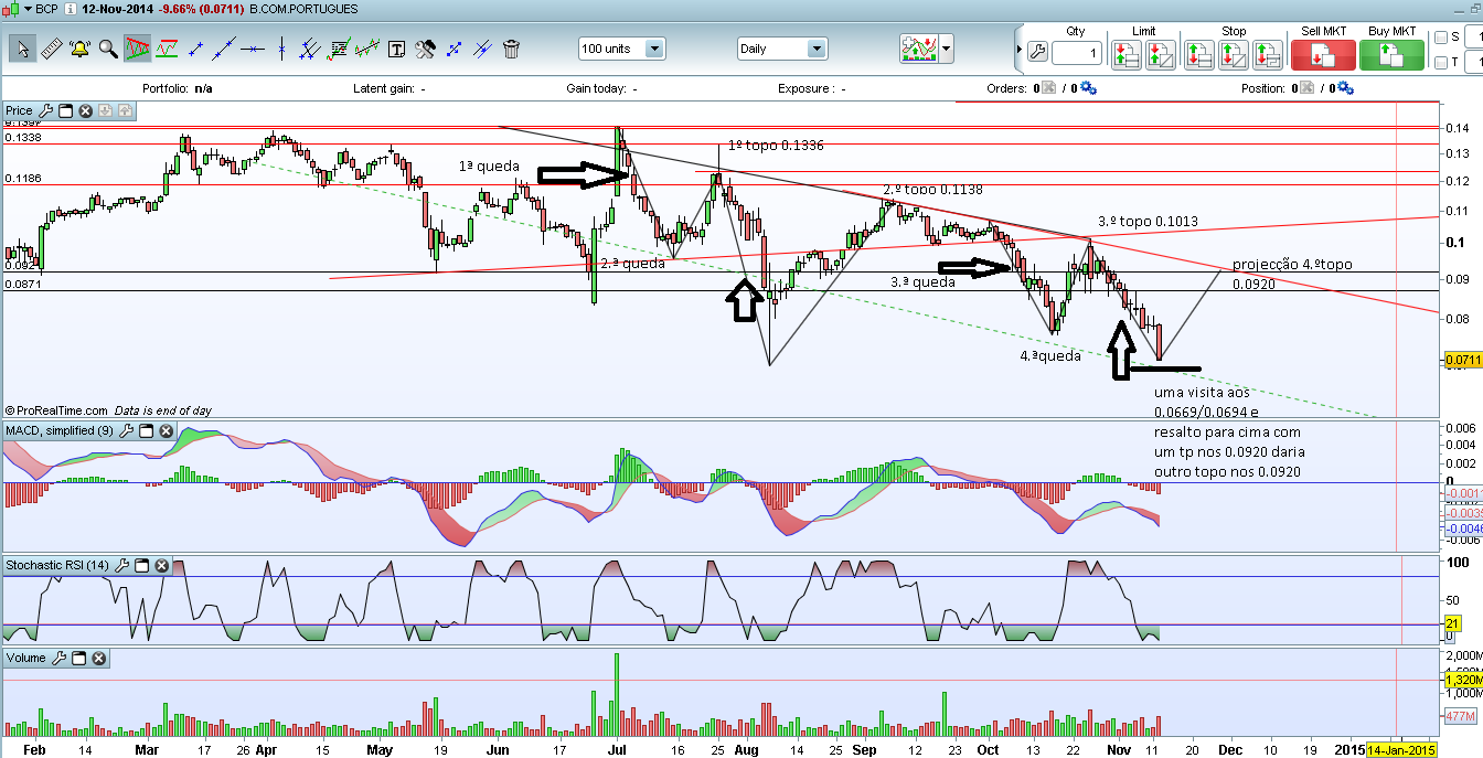 boas tardes a todos vou fazer uma analise ao BCP não esta muito bem mas temos de aproveitar esta onda que já esta a dar sinais de esgotamento muito sobre vendido .... vou resumir o meu estudo o BCP tem vindo afazer sempre topos sucessivos inferiores lower highs e quedas agressivas/sucessivas reparem no gráfico e podem concluir e analisar como eu um bem haja a todos