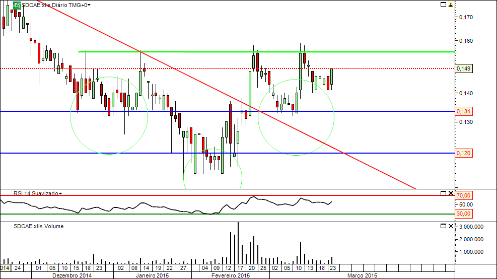 Esta tarde apareceram os compradores da Soares a limparem as ordens de venda, a vela diária que se está a formar poderá ser o sinal que a activação do IH&S (breakout da neck) estará para muito breve...