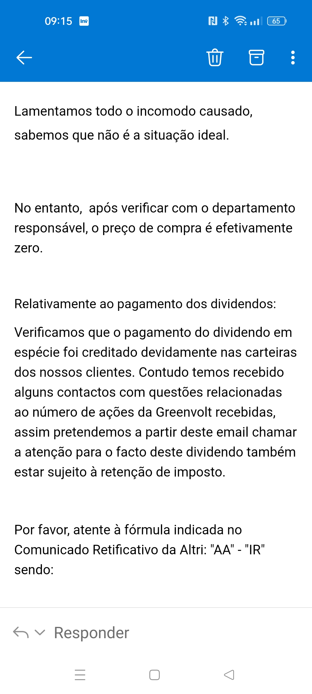 Se a Altri tivesse distribuído como dividendo em vez das ações da Greenvolt dinheiro e se Tu com esse dinheiro tivesses adquirido ações da Greenvolt, não haveria qualquer dúvida sobre o preço de aquisição.