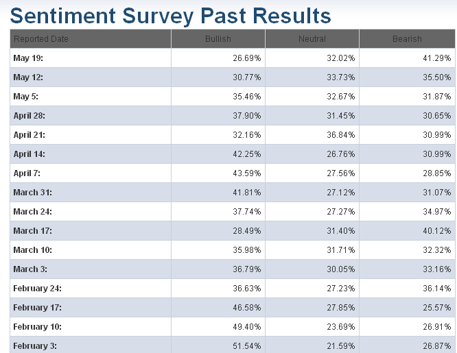 The Investors Intelligence readings this week were rather surprising to me. First of all, the ratio of bulls fell to 46%. To put that in perspective, this figure hadn't been under 50% since November. That means their resolve had been shaken neither by the Middle East turbulence, nor the Japanese earthquake and radiation issues Quite frankly, the same goes for the action in the PIIGS -- Portugal, Italy, Ireland, Greece and Spain. But, clearly, when you crush the commodity complex as we did in the last few weeks the bulls pulled in their horns.