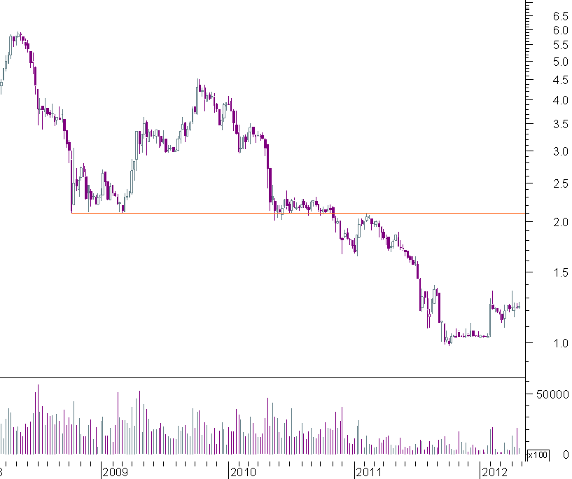 o gráfico de curto prazo ilustra bem o que é uma acção com reduzidíssima liquidez (os volumes andam anémicos)