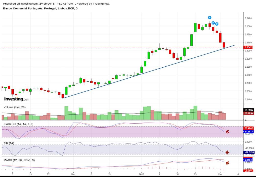 Mas é preciso manter a perspectiva: há um ano, a 6 de Fevereiro de 2017 o BCP cotava a 0,173€ (ainda caiu para 0,145€ depois disso). A 31 de Dezembro de 2017 cotava a 0,272€. Quase 100% num ano e quase 10% num mês não são rentabilidades desinteressantes para quem investe.