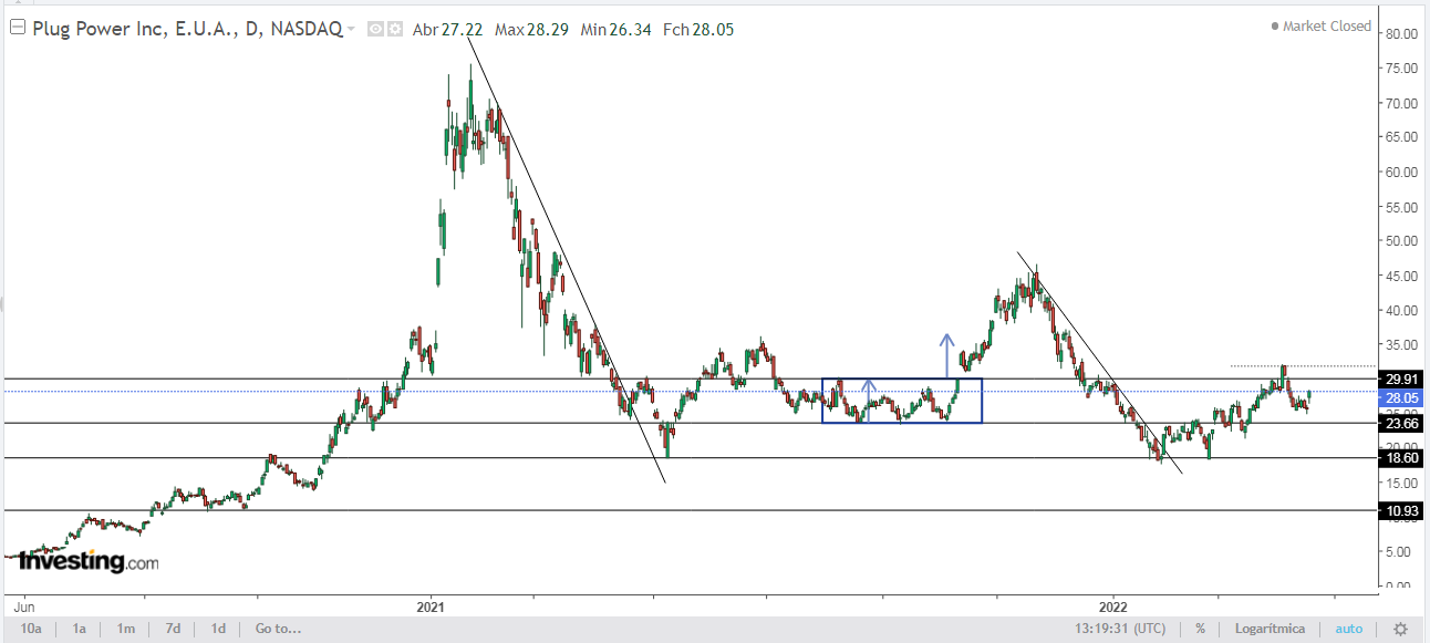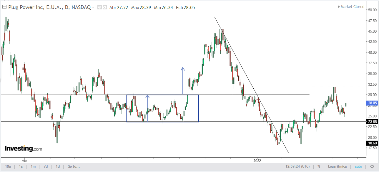 A Plug está novamente com tendência ascendente, caso consiga fazer uma alto mais alto, seria mais um sinal de força.
