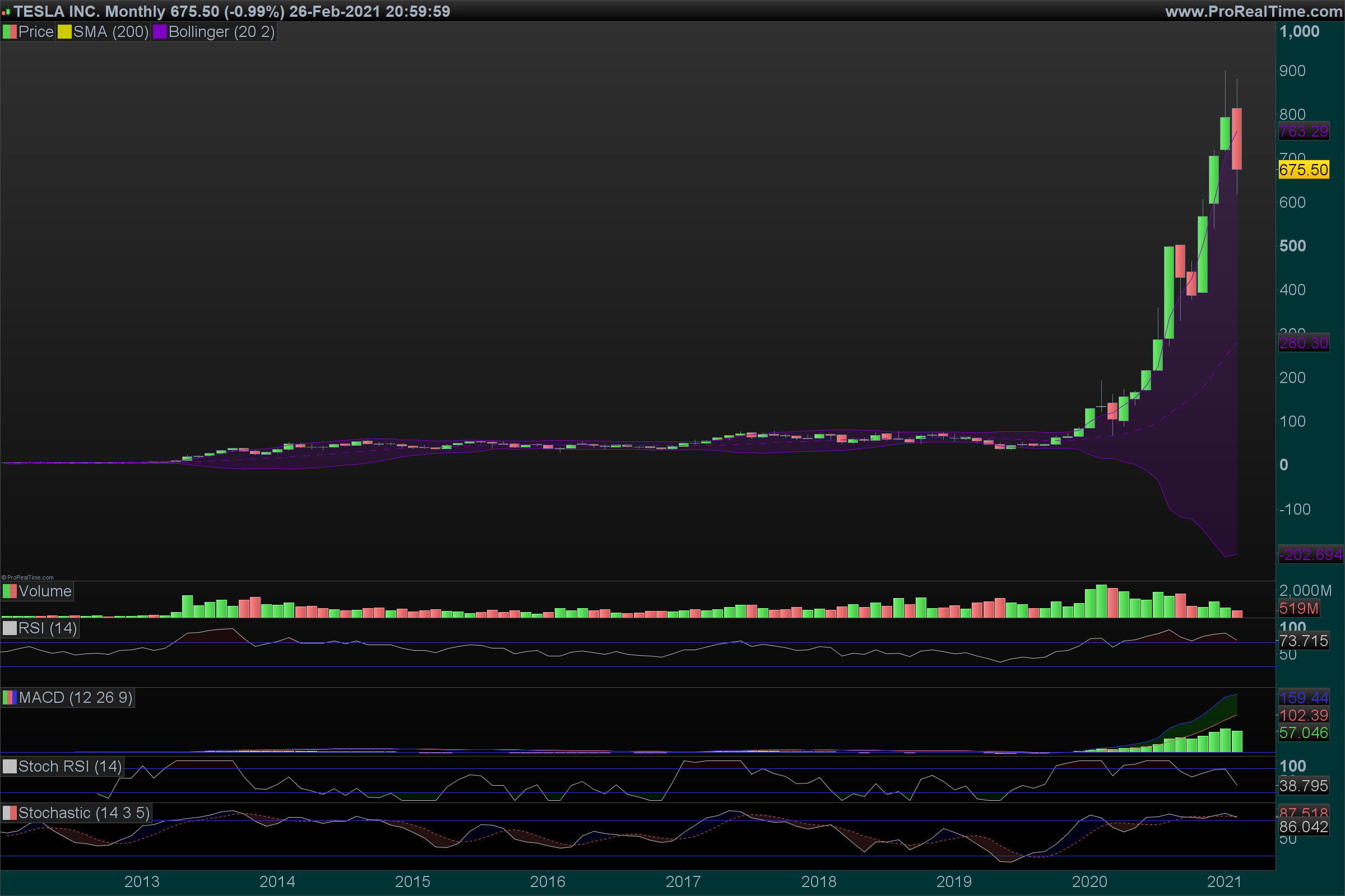 A Tesla, cresce porque é um fruto apetecido e nisso tal como com a Apple não vale a pena lutar contra a tendência, neste momento tecnicamente tudo aponta a uma correcção significativa nos próximos tempos.