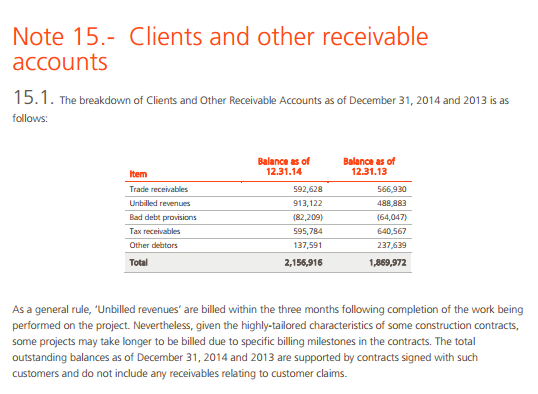 o que se ve aqui desde logo podem muito bem ser 1,2 bi de empolamento contabilistico num so ano ao aparecerem em dividas de clientes 0,5bi de coisas nao faturadas mais 676m de goodwill em projetos isto apenas em 2014