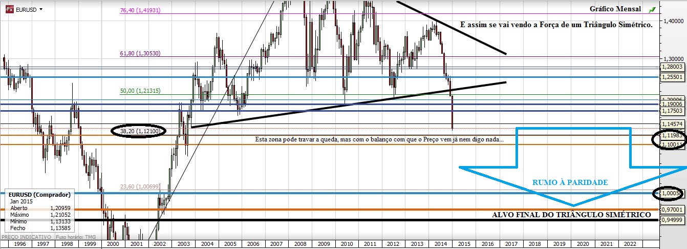 Recordo que neste tópico, há um gráfico que mostra a linha de Fibonacci, 61,8% de retração toda a subida histórica do EUR/USD entre 2001 a 2008.