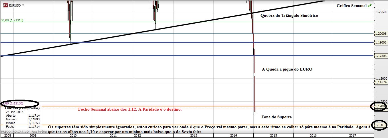 A quebra do mesmo sinaliza valores bem mais abaixo, sendo 1.10 e 1.07xx os valores a ter em conta. A paridade é outra história.