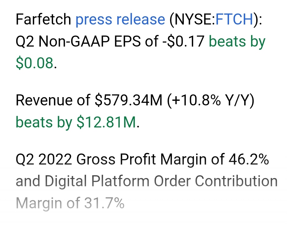 Sinceramente não acompanho muito a Farfetch, que vem desde o ano passado num brutal "bear market"...