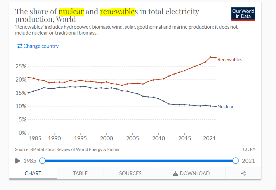 A energia nuclear continuar a gerar mais energia que o solar+wind a nível global.