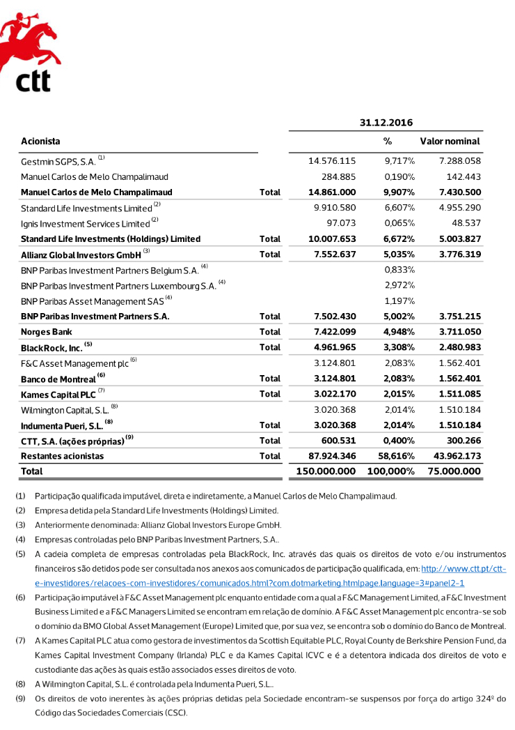 Àlvaro Escreveu:euro-bom, já tinha pensado nessa possibilidade, mas não estou seguro que possa acontecer. O que de melhor poderia acontecer aos CTT's seria a entrada de um accionista de referência. De resto o banco tem tudo para compensar o correio e o que a geringonça levou de lucro dos serviços financeiros. O Governo ao fazer o que fez não se comportou como pessoa de bem, eles lá sabem o que andam a fazer. Como está à vista de todos foi preciso a SIC espetar-lhe com uma grande reportagem para deitarem fora o esqueleto que tinham no armário. Muitos mais teriam de saltar de lá.
