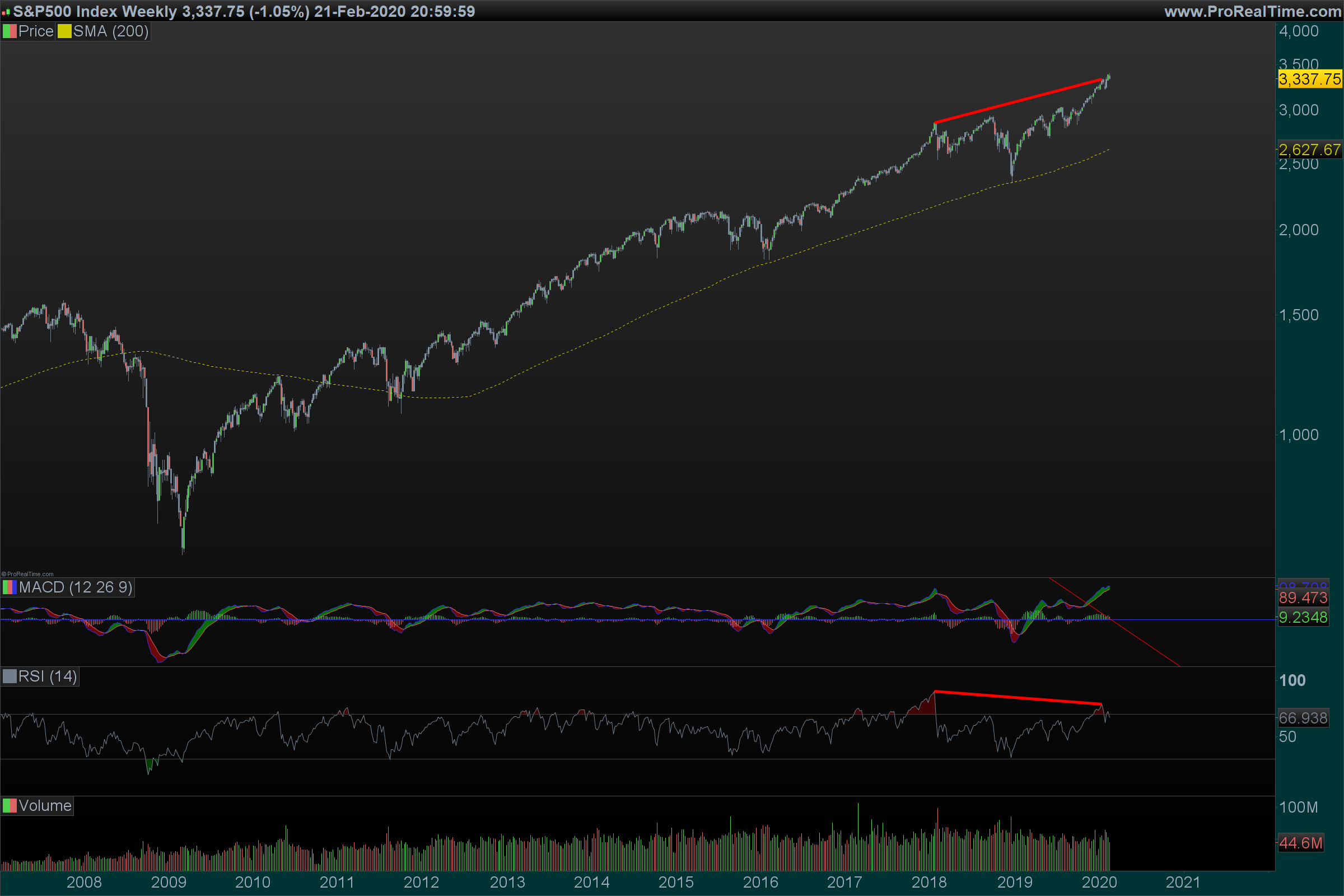 contudo alguns alertas vinham-se acumulando ; divergências negativas no oscilador, subidas muito inclinadas, logo não sustentáveis, desde Outubro praticamente não houve consolidações,....etc....