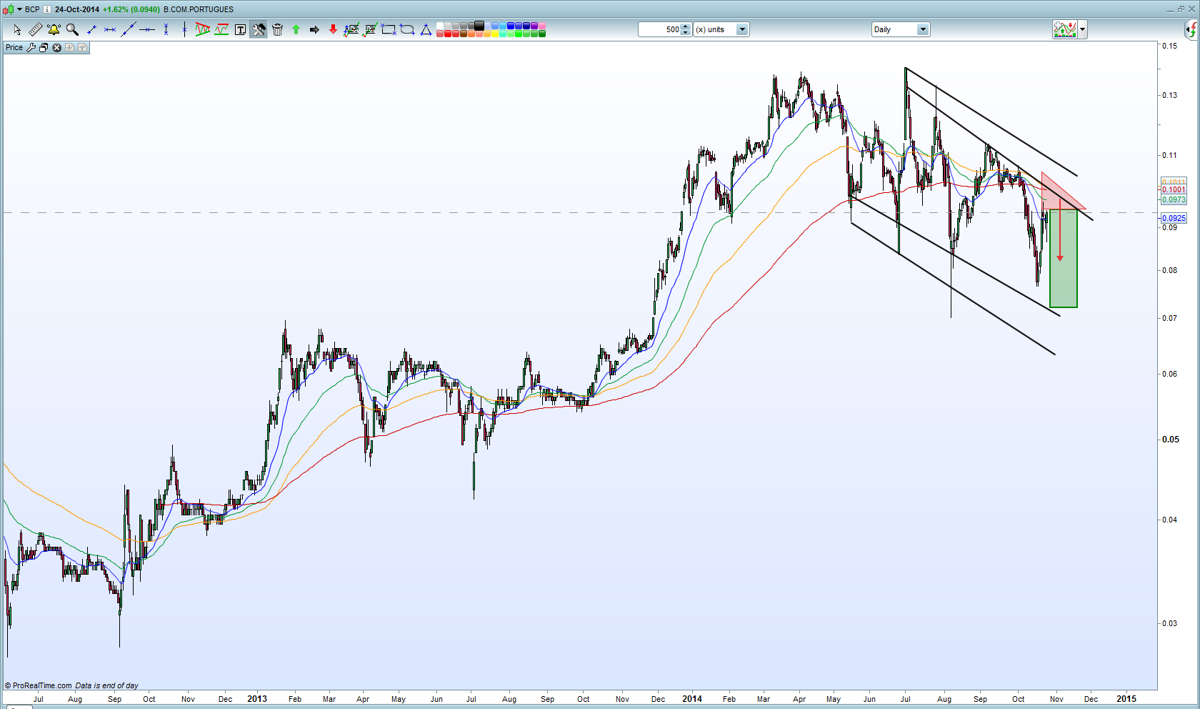 3,8 % da Carteira aplicado na 6ª Feira ( 0.0927€). 2ª feira se houver queda ( de pelo menos 5%) nos primeiros minutos de negociação, reforço com mais 3%. Espero que o ambiente geral relativamente à banca em Portugal estabilize e potencie algumas subidas ao longo das próximas semanas. A passagem para a supervisão do BCE, poderá também ajudar a algum otimismo. O BCP, passado algum "embate" inicial também deverá beneficiar da onda.