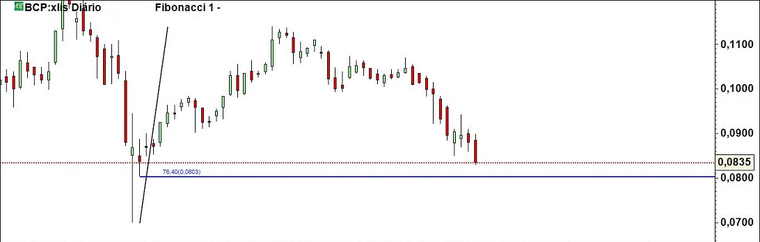 Construindo uma oportunidade "única" de compra de BCP em saldos e com recurso a uma única ferramenta: pelas bandas da fibo 76,4.