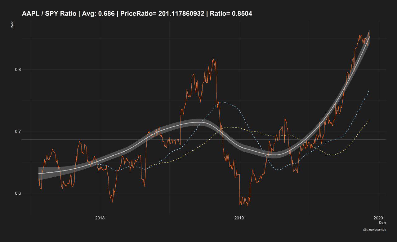 Fica um rácio do AAPL / SPY e XLK /SPY para ilustrar o que digo