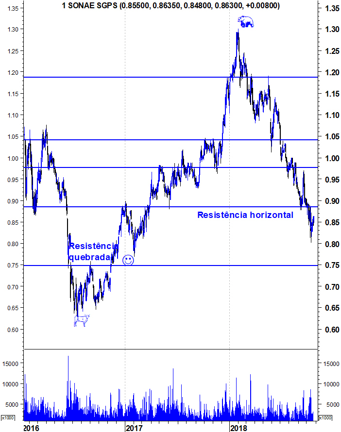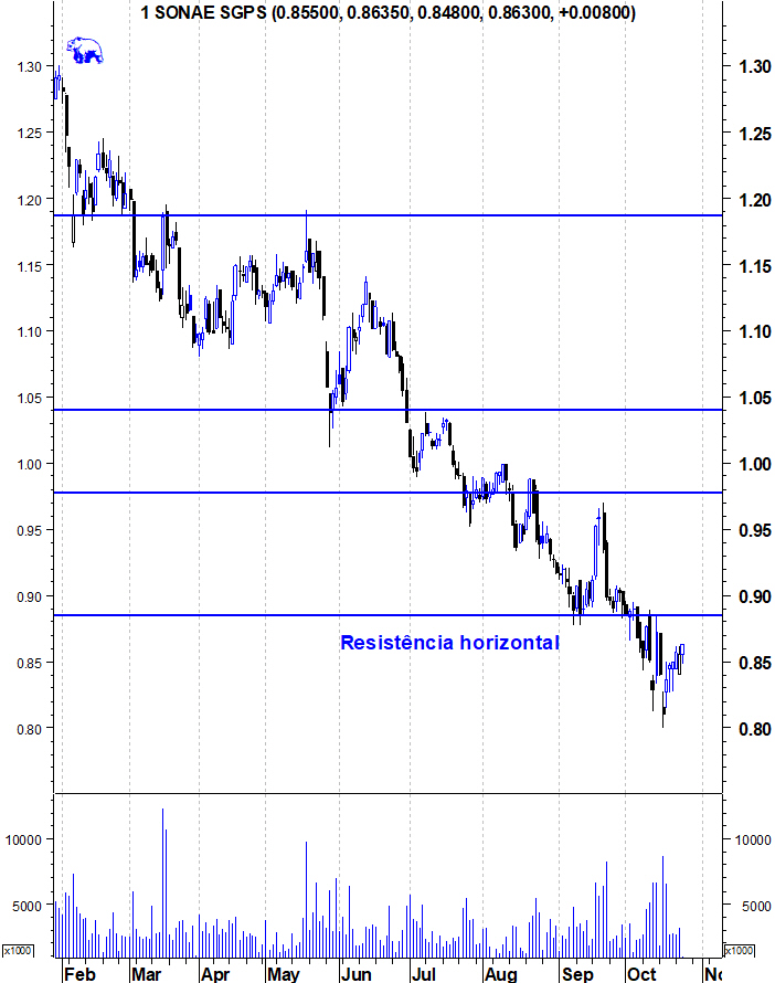 O panorama para a Sonae também não está bonito. Próximo Suporte: 0,75?
