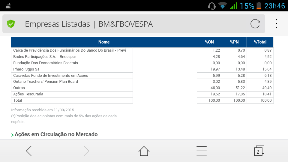 Creio que os 15% são via directa e que detem mais 12% de forma indirecta (provavelmente estão ali na categoria dos "outros").