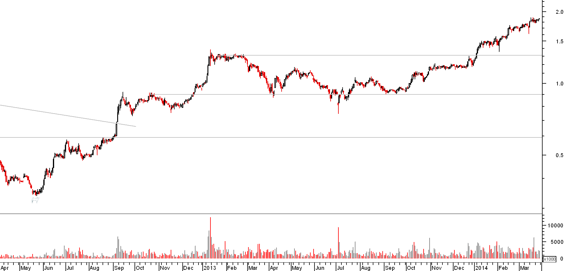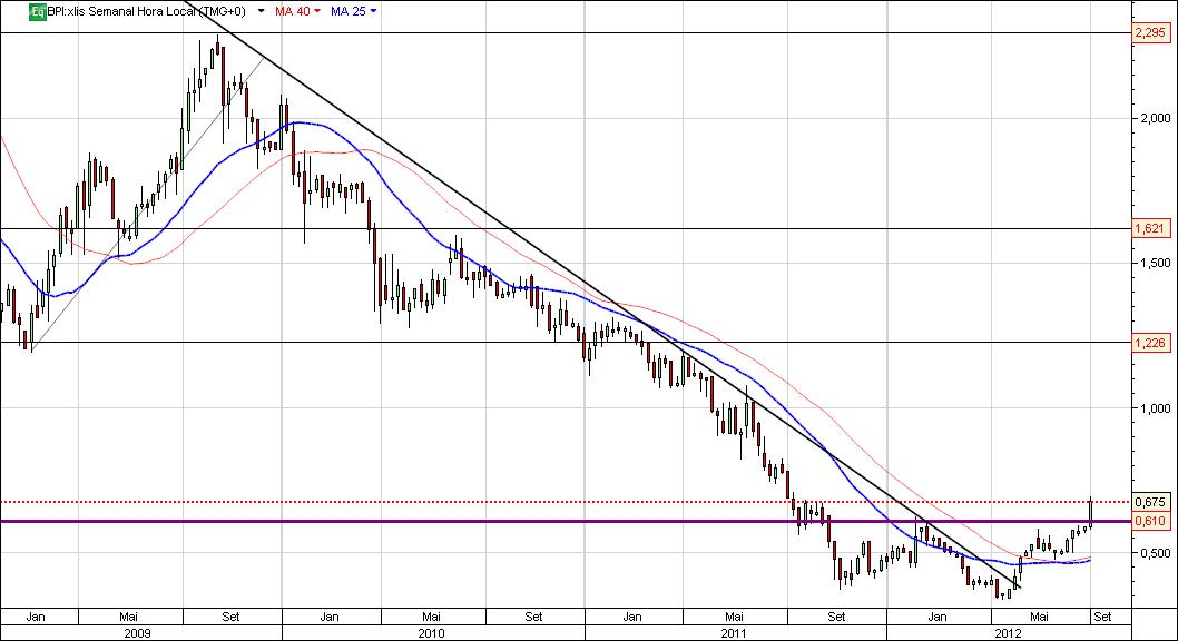Desde Setembro 2012, altura em que o BPI quebrou a resistência dos 0,60€ e os touros tomaram de assalto o título, já leva cerca de 200% de valorização.