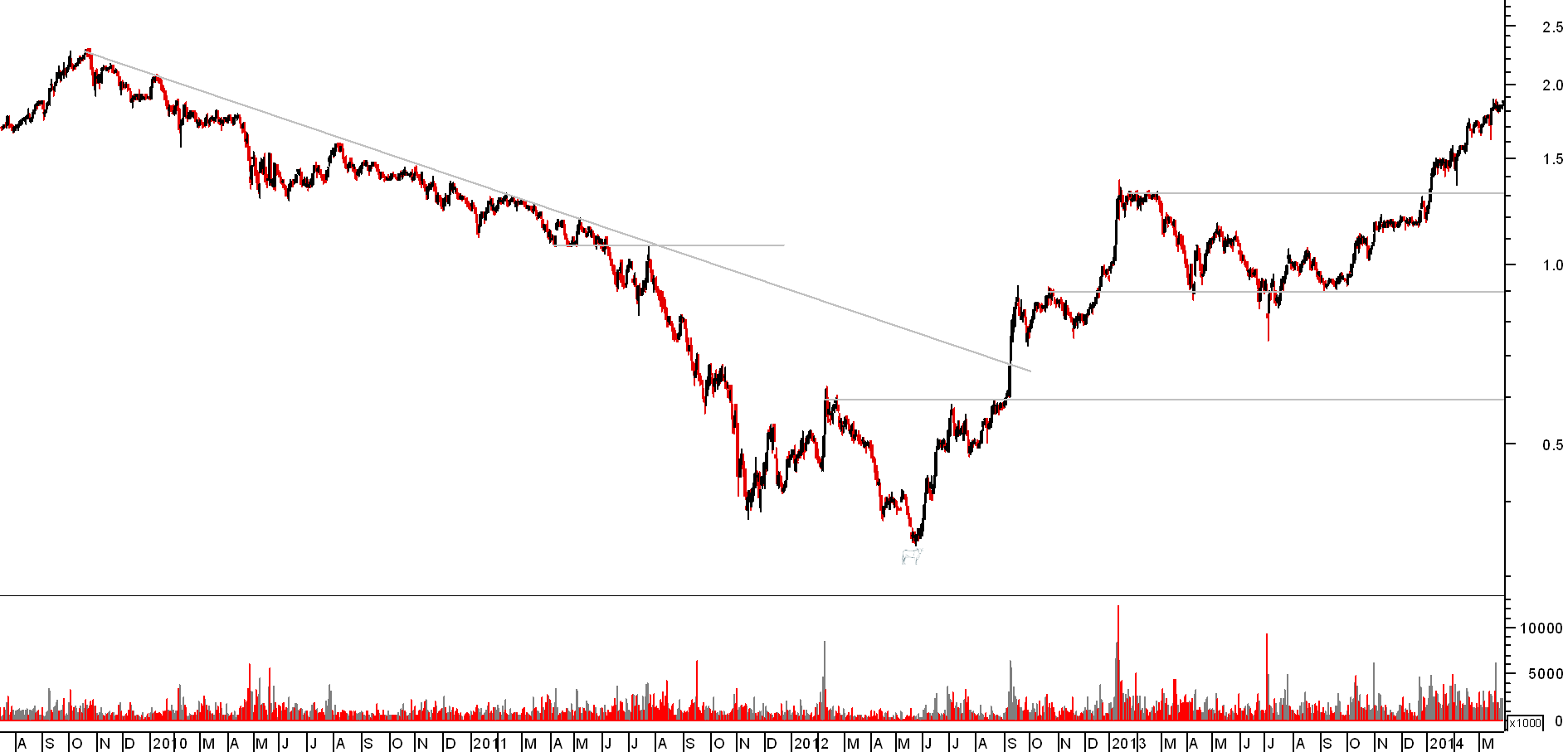 Mas tenho dificuldade em opinar sobre que decisão tomaria à data... O climax que se sentia por aquela altura é completamente diferente do actual. Se comparares com o PSI-20, verás que coincide com a realização de um lower-low. O título e o índice em mínimos, para mim não são boas razões para entrar.
