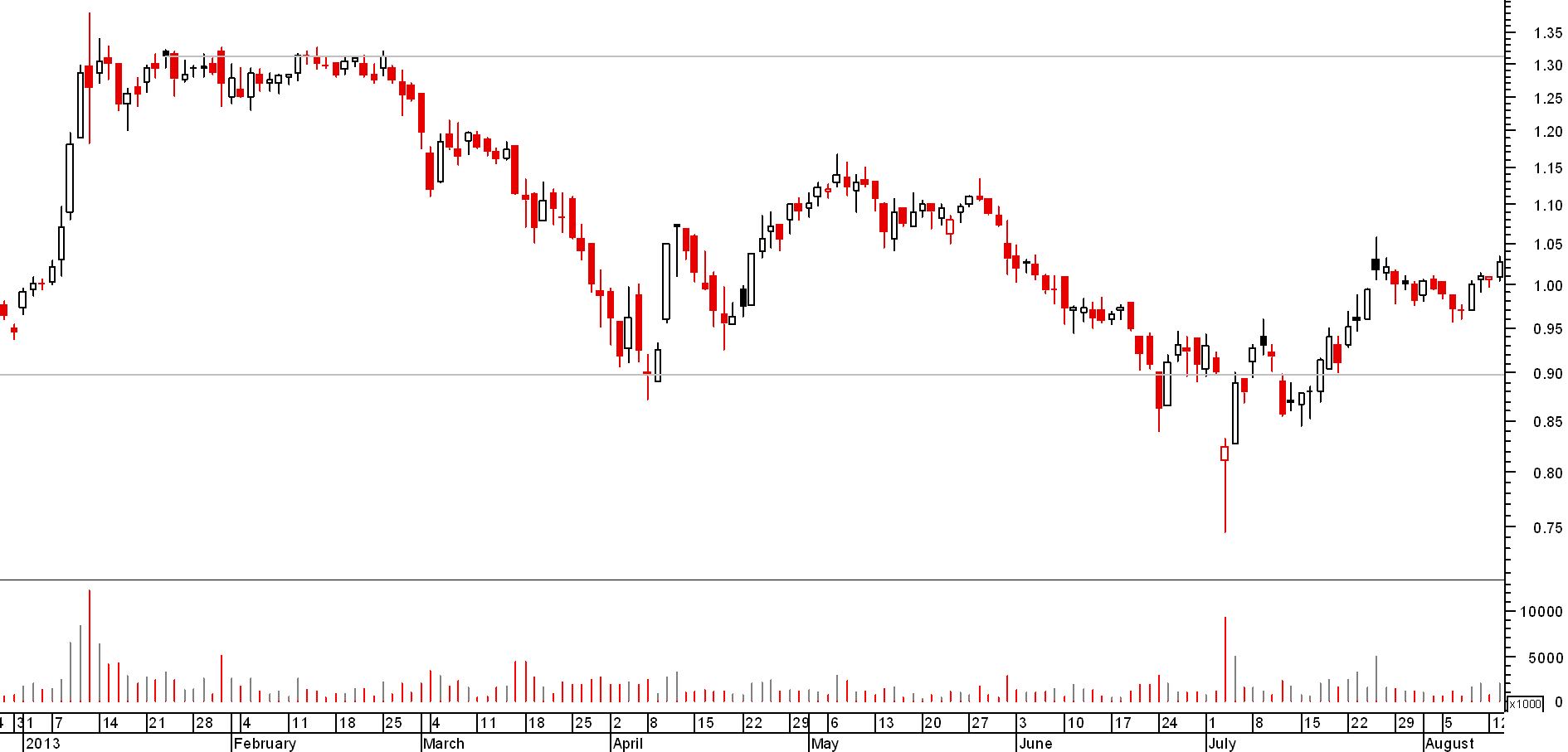 Pelo meio, um drawdown que muito provavelmente me faria sair da cotada ( dos 1,33€ aos 0,77€ ) a meio desta caminhada.